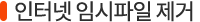메뉴모음 > 도구 > 인터넷 옵션 > 검색기록 > 삭제